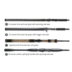 Produrre calchi senza sforzo e la gestione della linea pure, il Okuma Cerros Casting Rods sono attrezzati conh Sea Guide XO 316-SS cornici angolate e inserti guida linea di siliconi per ridurre i colpi di linea e le abrasioni di linea per getti più precisi. Un design a manico diviso con EVA sagomato offre anche un comfort superiore e un migliore equilibrio per il lungo dGli Okuma Cerros Casting Rods offrono una qualità a livello di tour in un punto di prezzo del pescatore del fine settimana.