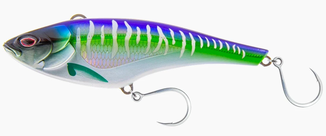 The Nomad MADMACS is a falling super high speed trolling minnow can to be trolled at speeds up to 20kn for the 6″ – 8″ Model and up to 15kn for the 10″ Model.velocità massima di salita. Il Madmacs può anche essere rotolato lento come 5kn e ha un’azione vibrante sorprendente anche a velocità molto basse grazie al sistema Autotune. Il Madmacs Caratterizza il pat. In attesa del sistema Autotune che permetteLa capacità di troll a tutte le velocità rende questo un must avere attratto in ogni diffusione. Il Madmacs correrà ad una profondità di circa 8-15ft wheN rotolato a velocità più lente e profondità di circa 3-4 piedi quando rotolato super veloce.